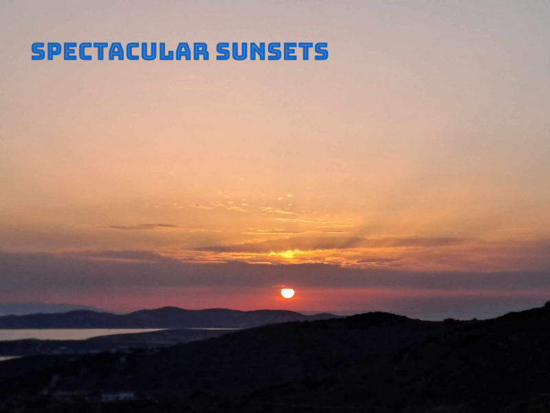One can see magnificent sunsets every night and spectacular sun rises each morning. Four lovely beaches are walkable (15-25 minutes walking, or in auto is 5-6 minutes). Tripiti beach, Glyfa beach and Bay beach are smaller and quieter, while Faragas beach is one the most popular and beautiful on the island